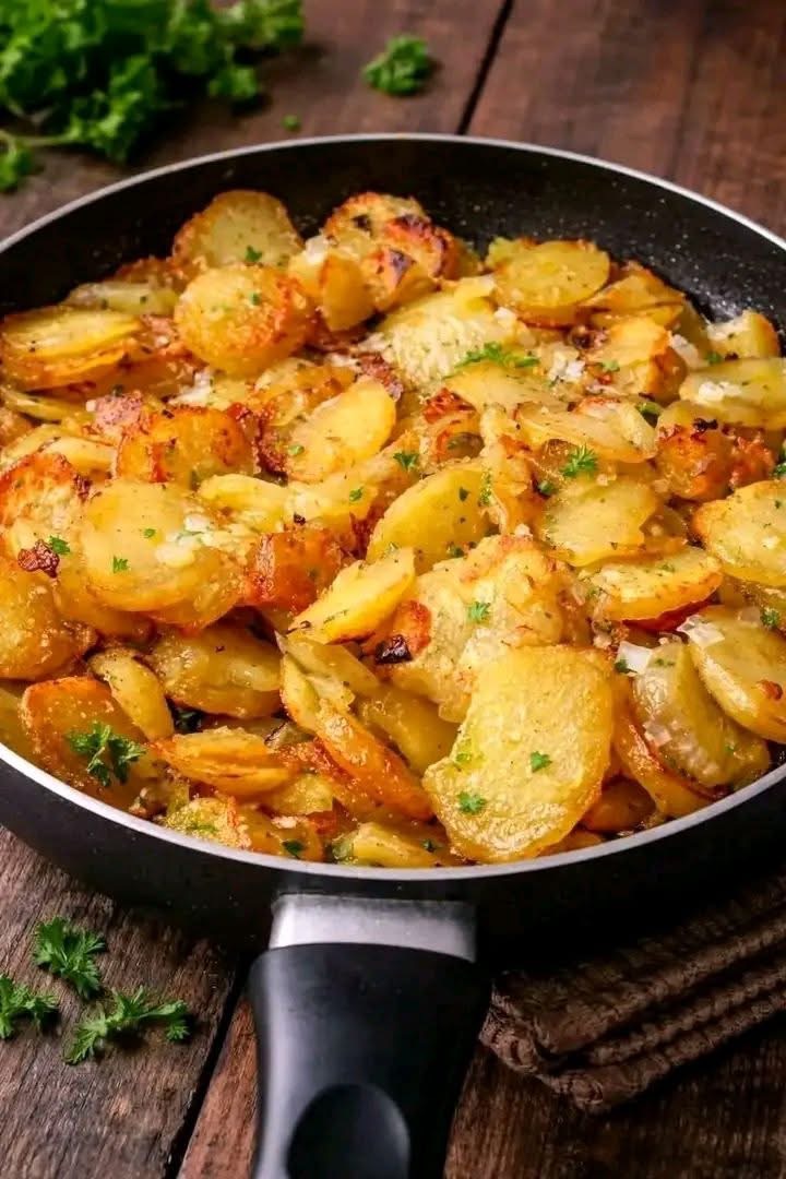 The recipe we are exploring today is a delicious version of sautéed sliced potatoes, cooked to golden perfection and enhanced with aromatic spices, garlic, and fresh herbs. It is a dish that does not require complicated techniques or expensive ingredients, yet delivers rich flavor and a delightful texture. Whether served as a side dish or enjoyed on its own, this recipe is perfect for everyday meals as well as special occasions.