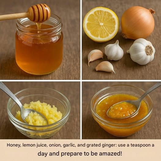 Hi! Have you ever heard of the incredible health benefits of a blend of honey, lemon juice, onion, garlic, and grated ginger? These natural ingredients have been used for centuries to improve overall health, strengthen the immune system, and fight infections. Whether you want to protect yourself from seasonal ailments, soothe a sore throat, or strengthen your immune system, this blend is a fantastic addition to your daily routine.